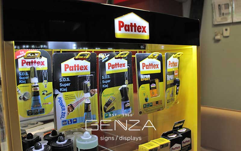 Jako uzupełnienie stosujemy kasetony oraz litery przestrzenne, które nadają ekspozycji trójwymiarowy charakter. Profesjonalna grafika reklamowa zintegrowana z bryłą ekspozytora sprawia, że marka staje się rozpoznawalna z daleka.